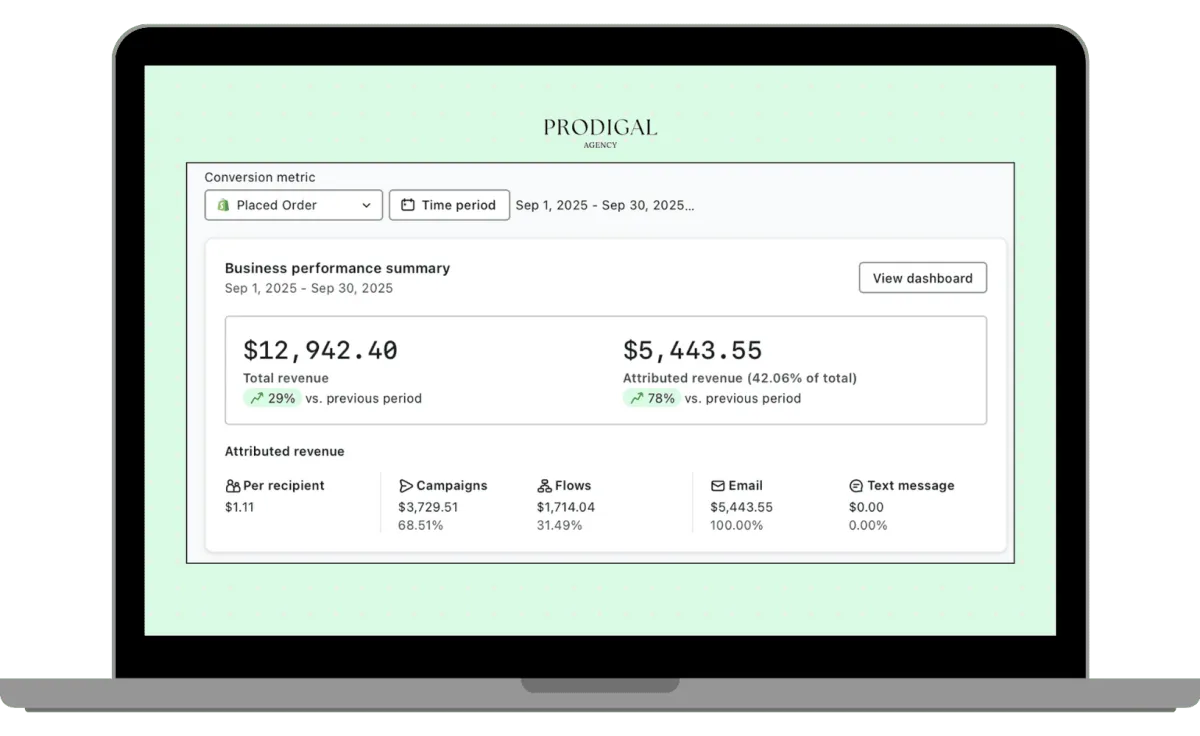 We offer complete retention marketing services including strategy mapping, infrastructure buildout, bespoke on-brand email flows, custom weekly campaigns, list growth, platform management, and SMS marketing.